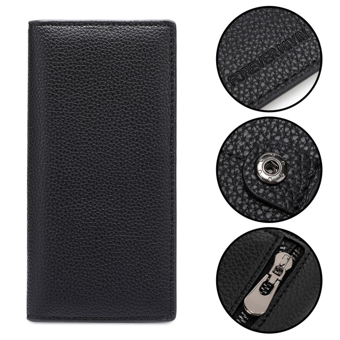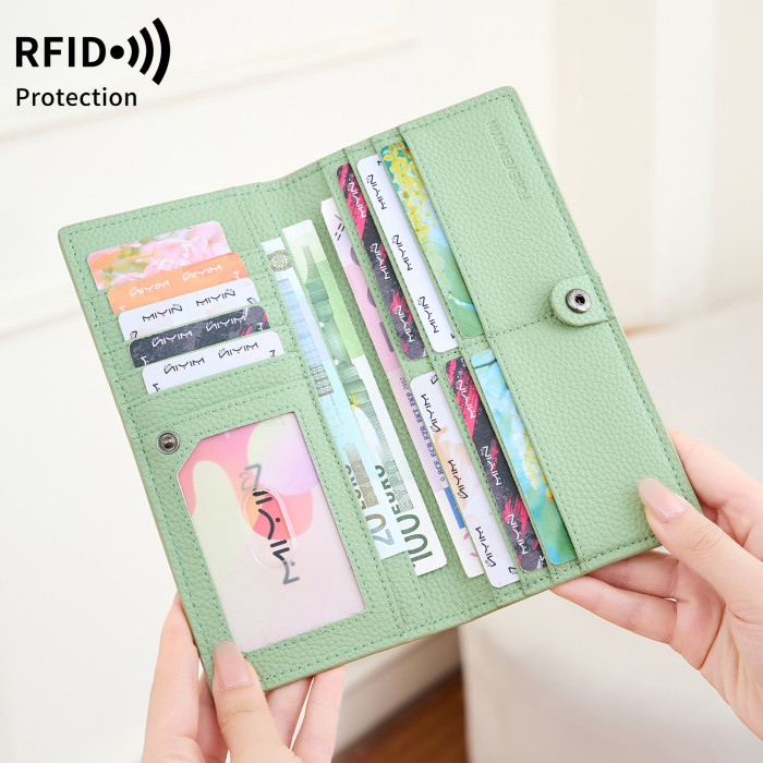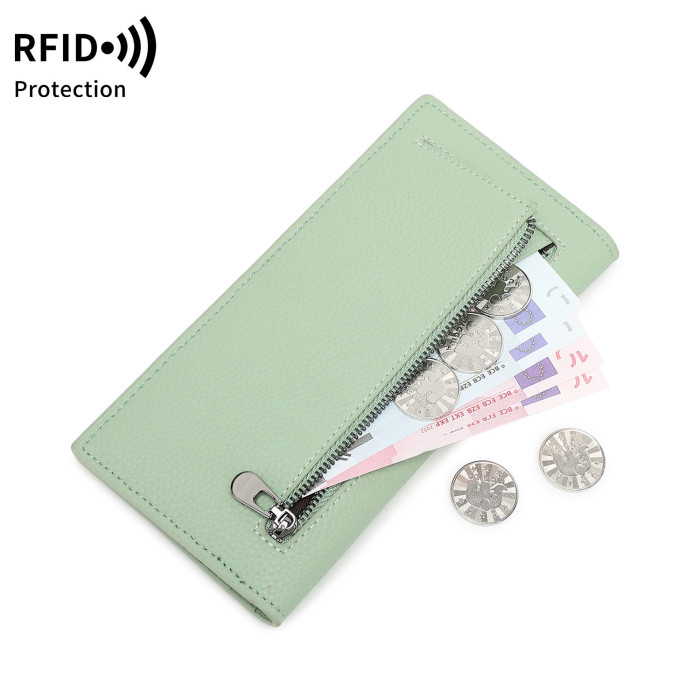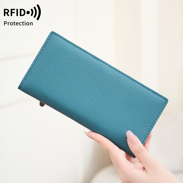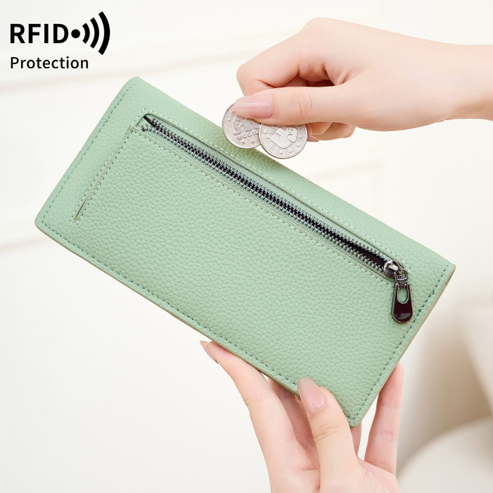 新款RFID女士雙折長錢包簡約純色超薄信用卡包多功能手拿包