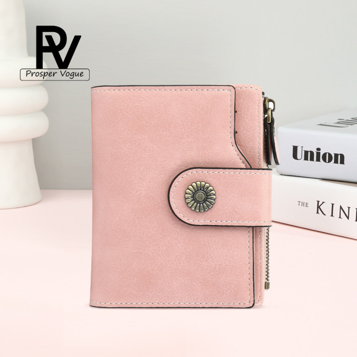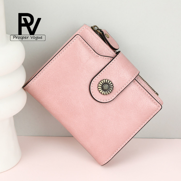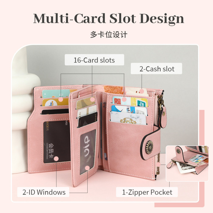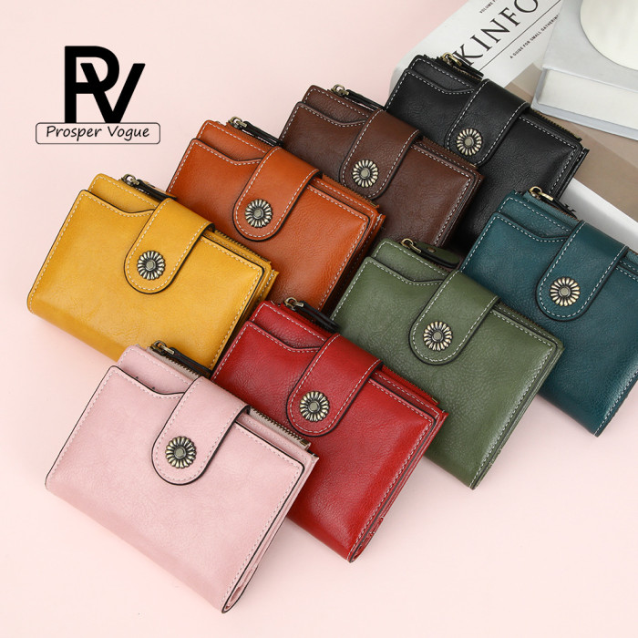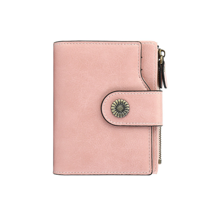 爆款錢包女短款歐美復古油蠟皮拉鍊超多卡位零錢包防盜刷