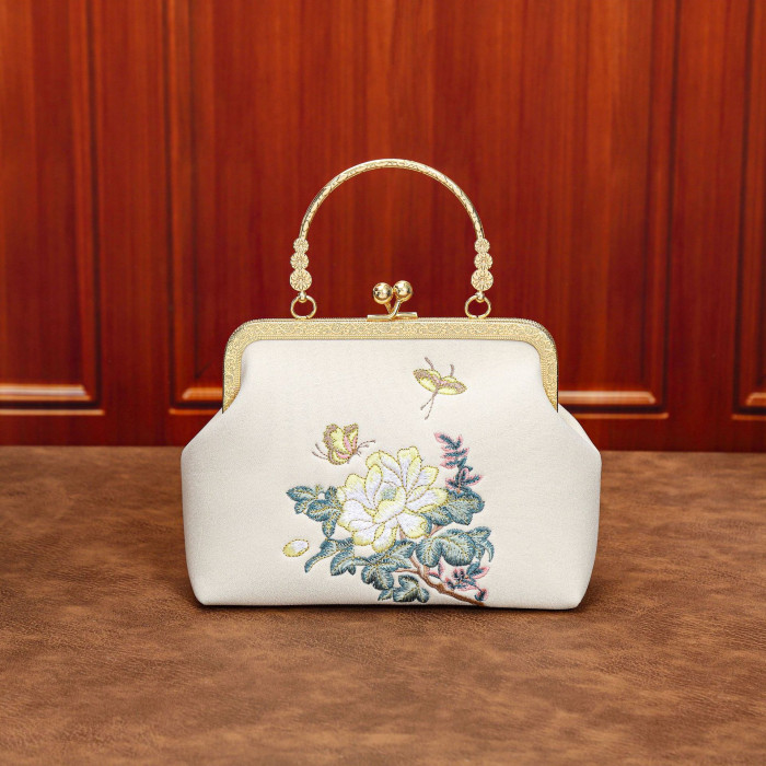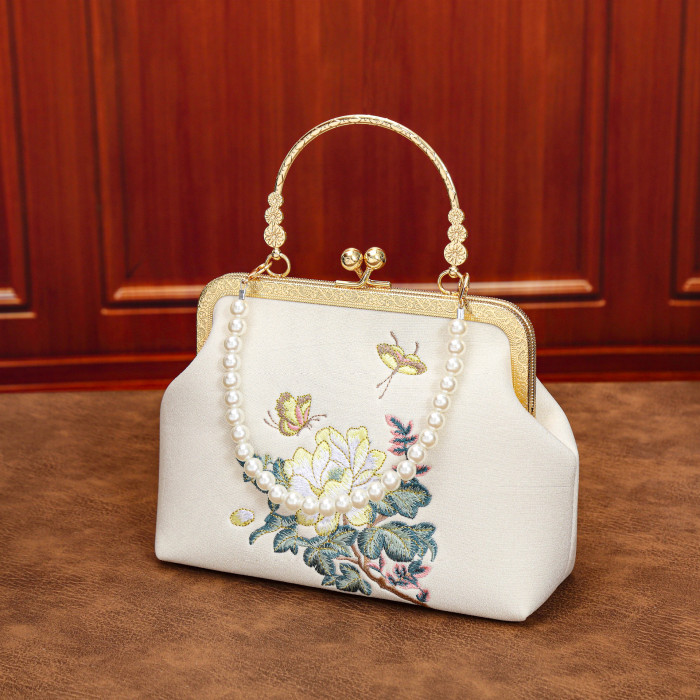 女包高級感輕奢刺綉風旗袍包新中式錦緞斜後背包文藝鏈條女包包