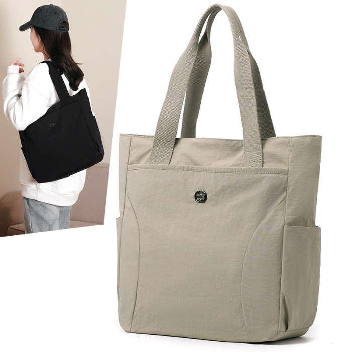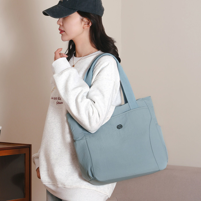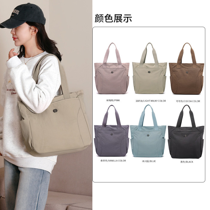 簡約休閒托特包女輕便大容量尼龍布女包可攜式逛街通勤百搭女單肩包