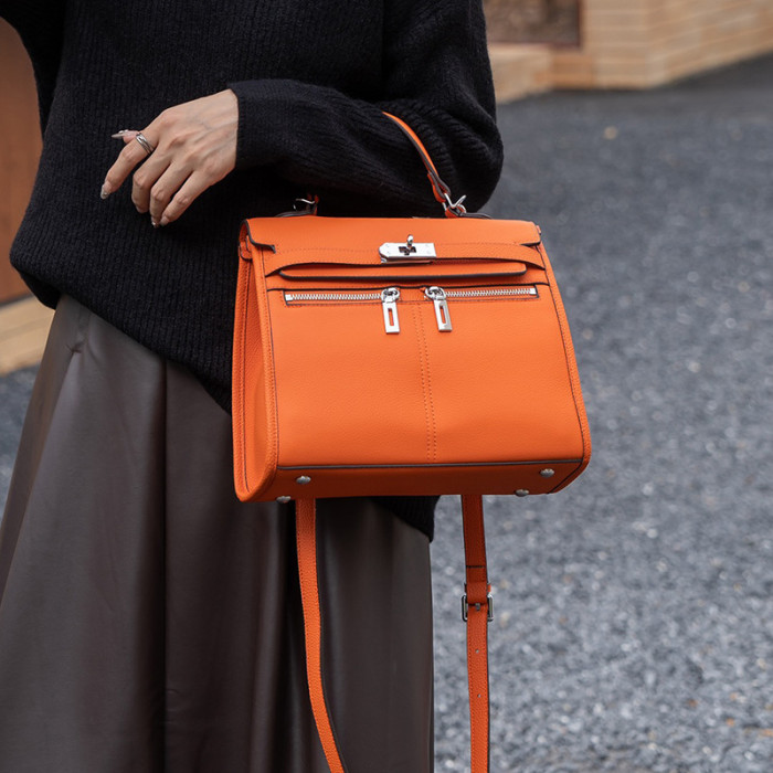 2025新款女士包包斜後背包高級感輕奢手提包頭層牛皮女包真皮凱麗包