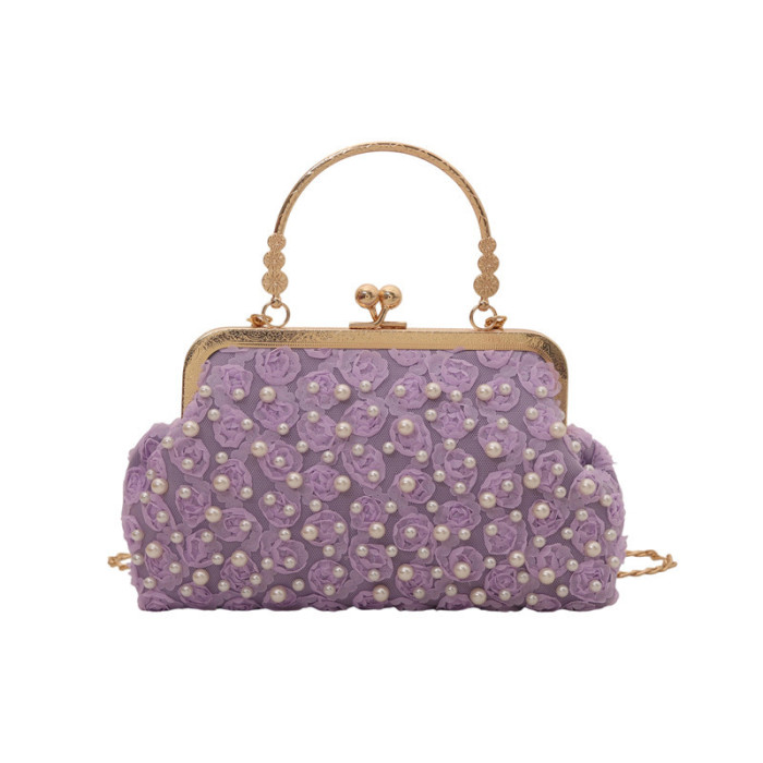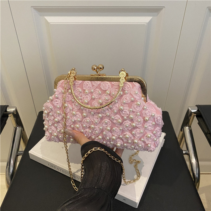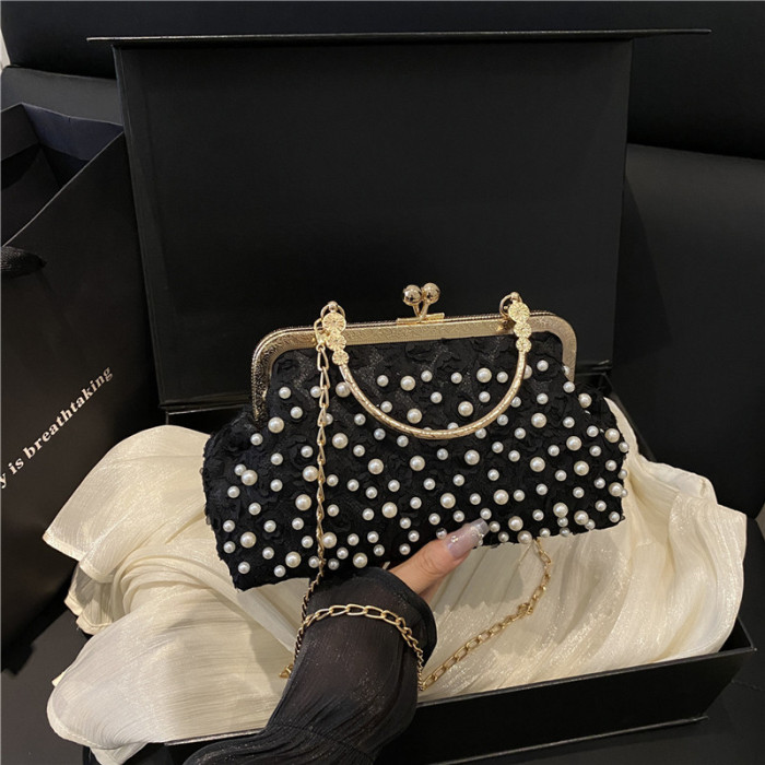 珍珠夾口女包韓版甜美風旗袍晚宴包度假時尚鏈條單肩斜後背包