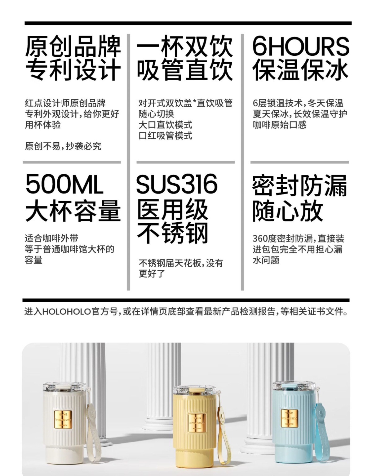 新款羅馬咖啡杯保冷高顔值吸管水杯子316不鏽鋼女新款保溫杯