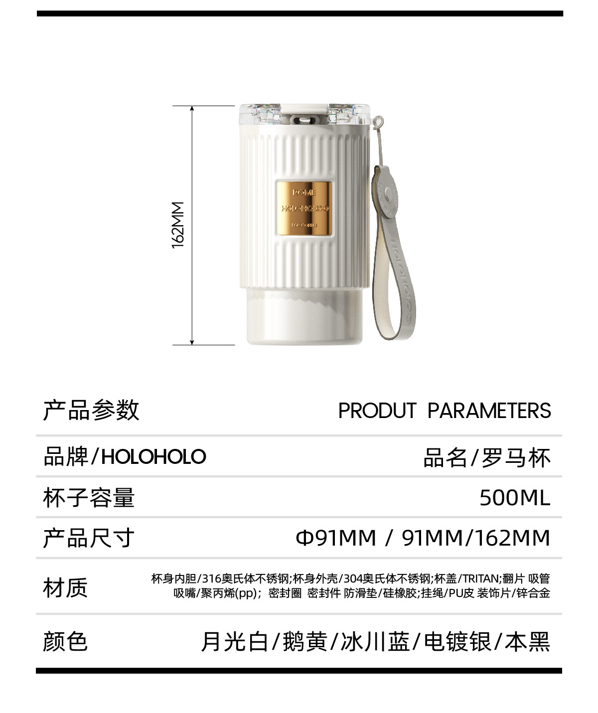 顔色 電鍍銀+黑色背帶500ml