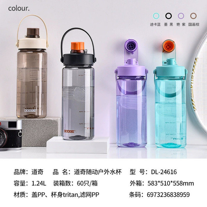 道奇大容量運動雙飲塑膠杯 可攜式背帶手提 戶外車用吸管水壺