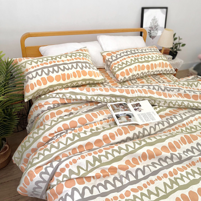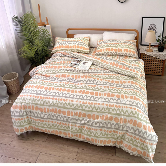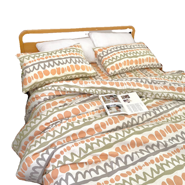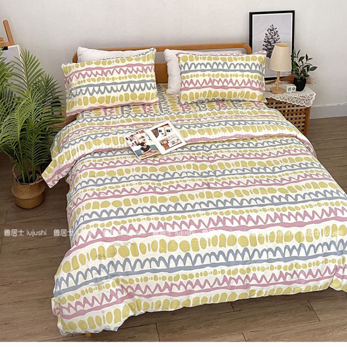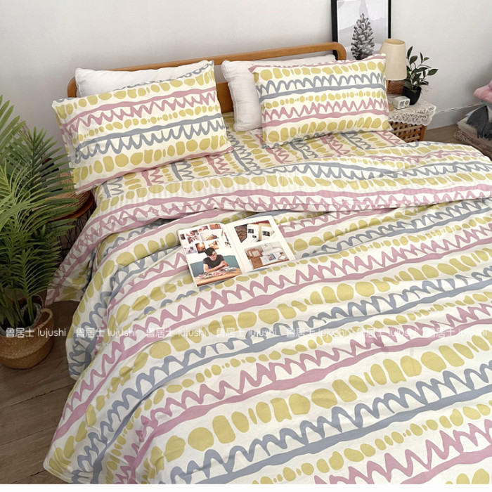 純棉斜紋床單被套100%全棉活性印染被罩單雙人套件卡通波紋學生