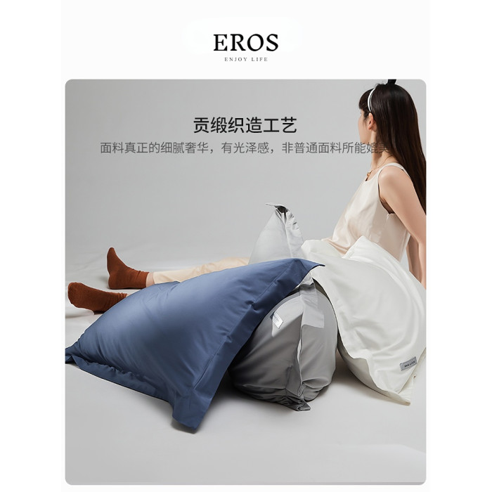 EROS 100S長絨棉枕套一對裝貢緞純棉全棉枕頭套單人枕芯套48x74cm
