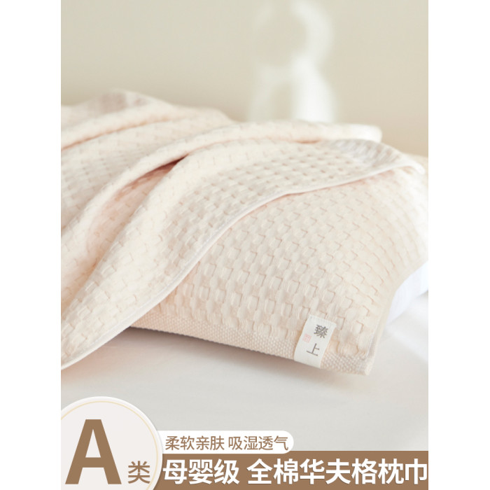 A類華夫格純棉枕巾一對裝2025新款輕奢高級感全棉紗布防頭油枕套