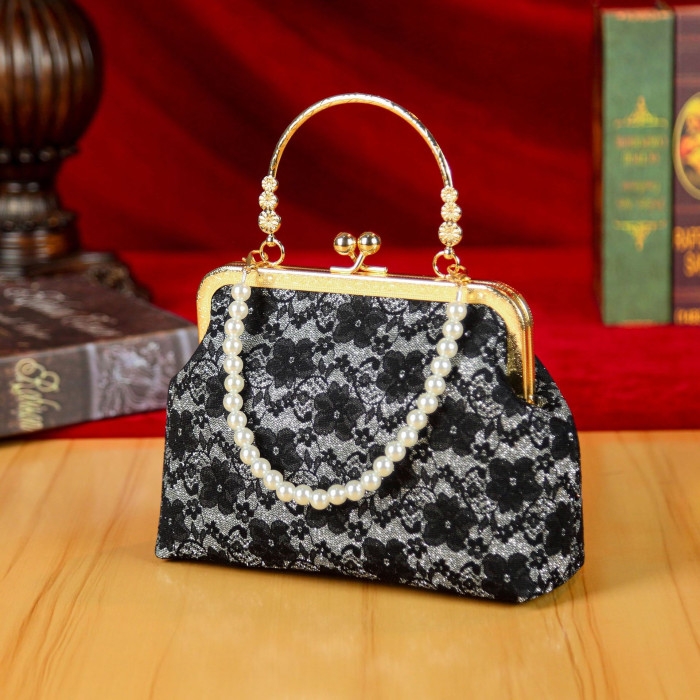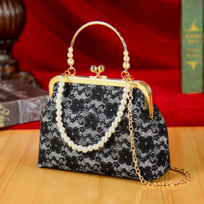 女包2025新款高級感晚宴包時尚蕾絲珍珠小衆旗袍包百搭鏈條口金包