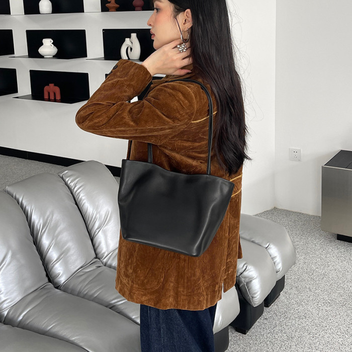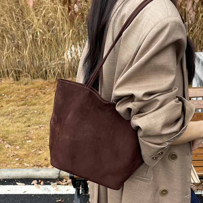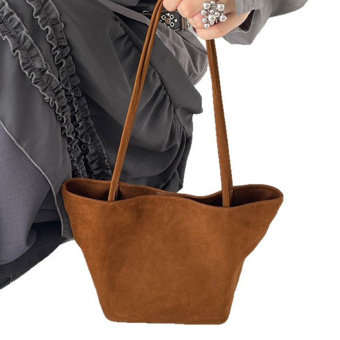 2025新款輕奢小衆高級感大容量通勤包 真皮麂皮單肩女包牛皮托特包