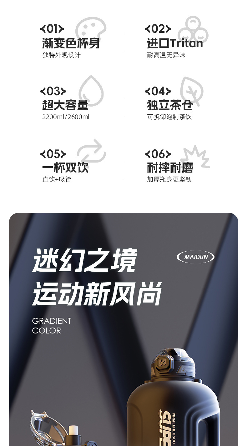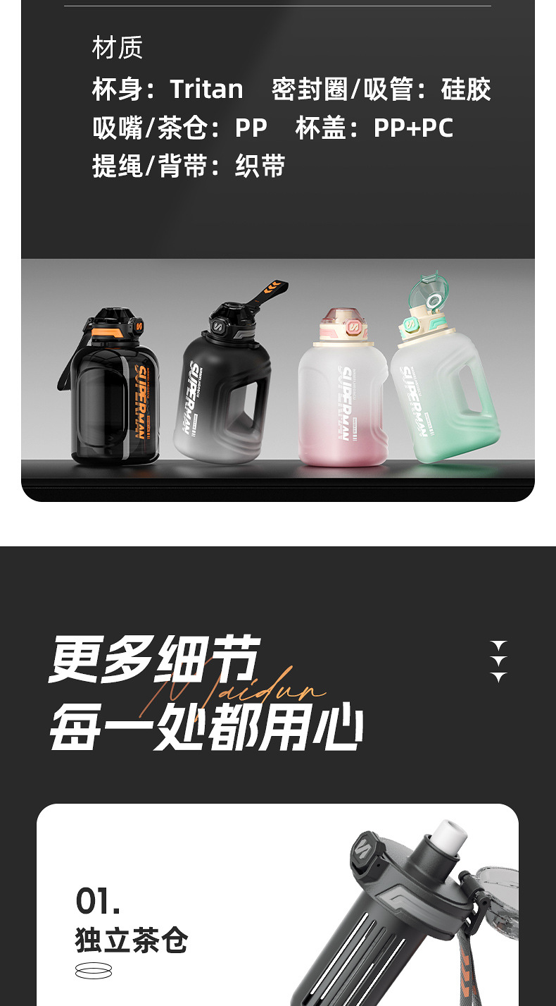 運動水杯男生大容量水壺夏季健身噸桶噸耐高溫頓頓桶吸管太空杯子