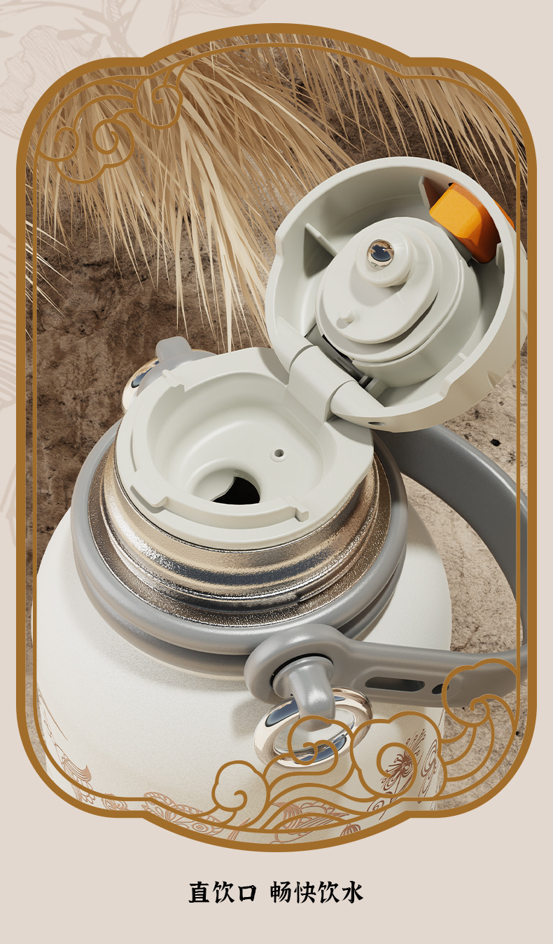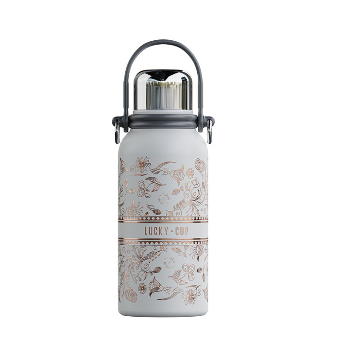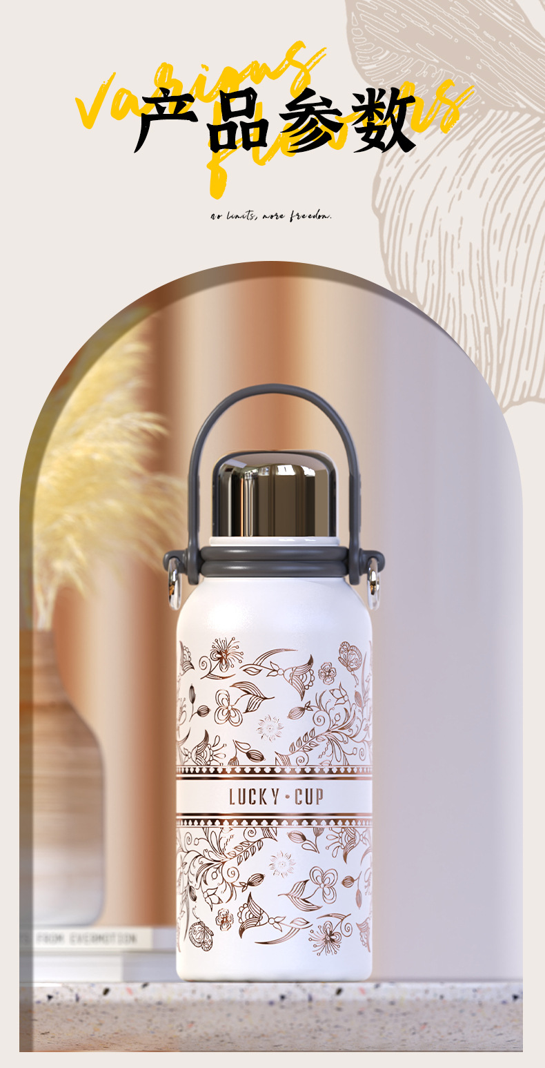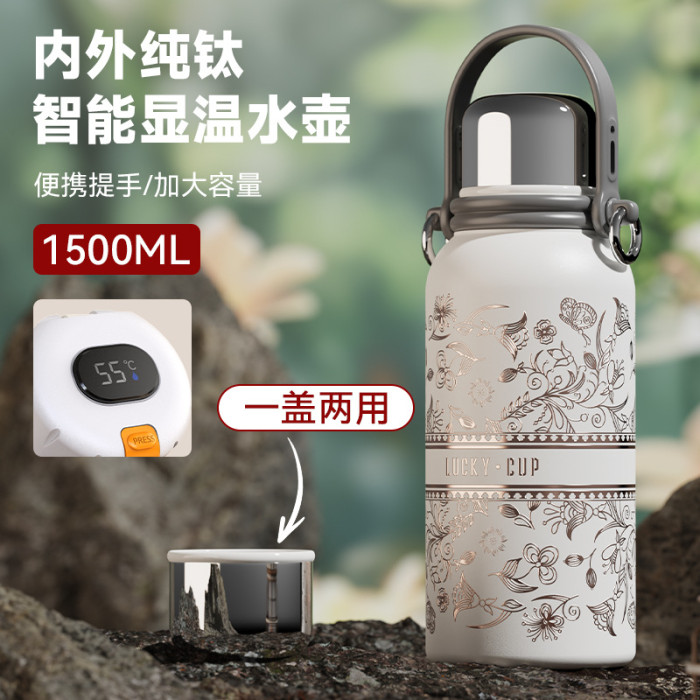 新款純鈦大容量保溫壺可攜式提手輕奢感保冷杯女高顔值刻字杯子