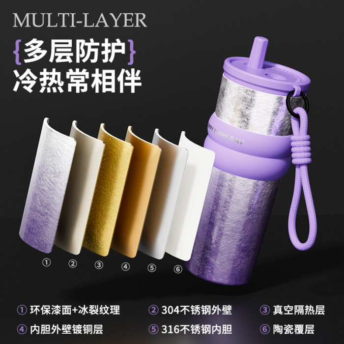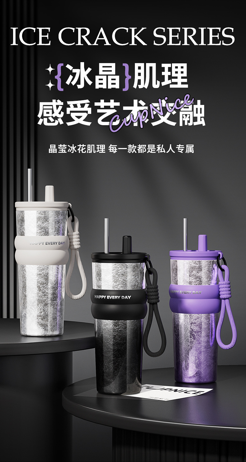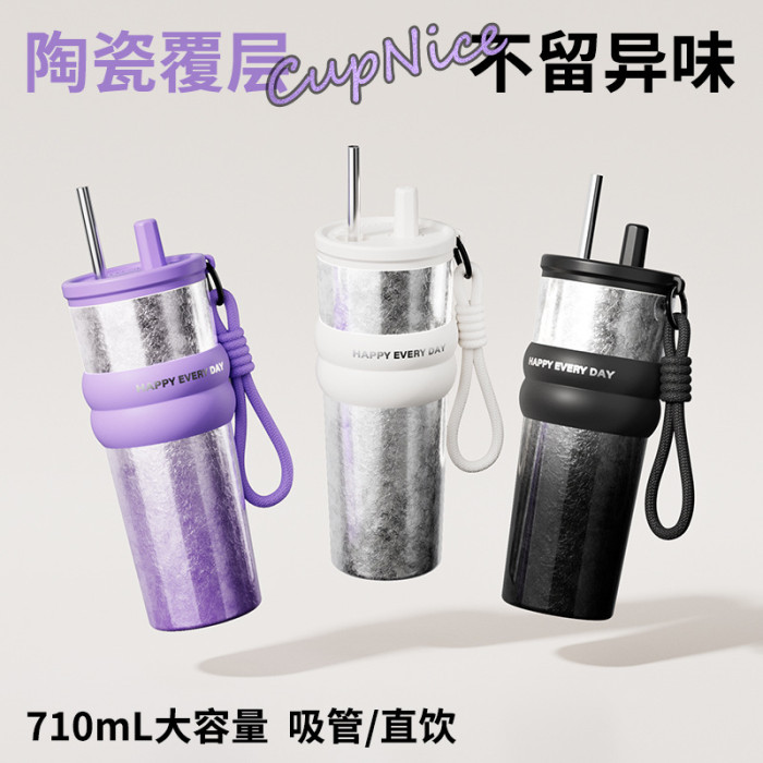 保溫杯女生高顔值學生2025新款陶瓷內膽大容量保冰杯吸管冰霸杯子