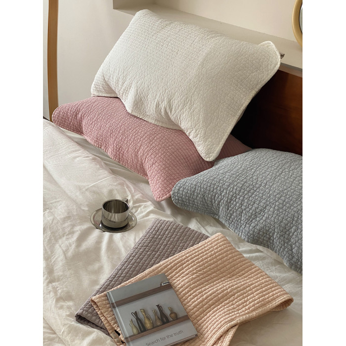 韓國砂洗80支全棉加厚絎縫成人枕巾 夾棉枕套皮 純棉吸汗可固定