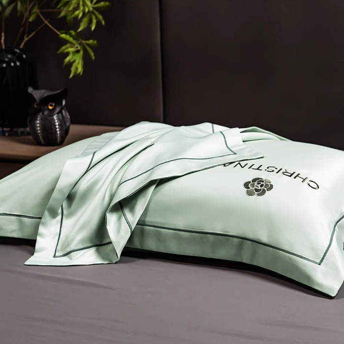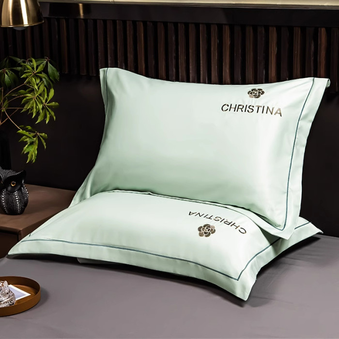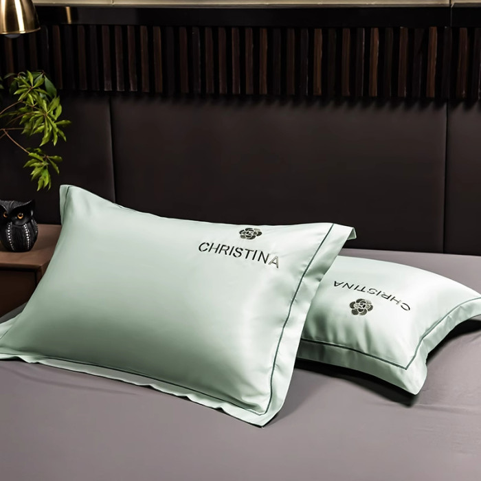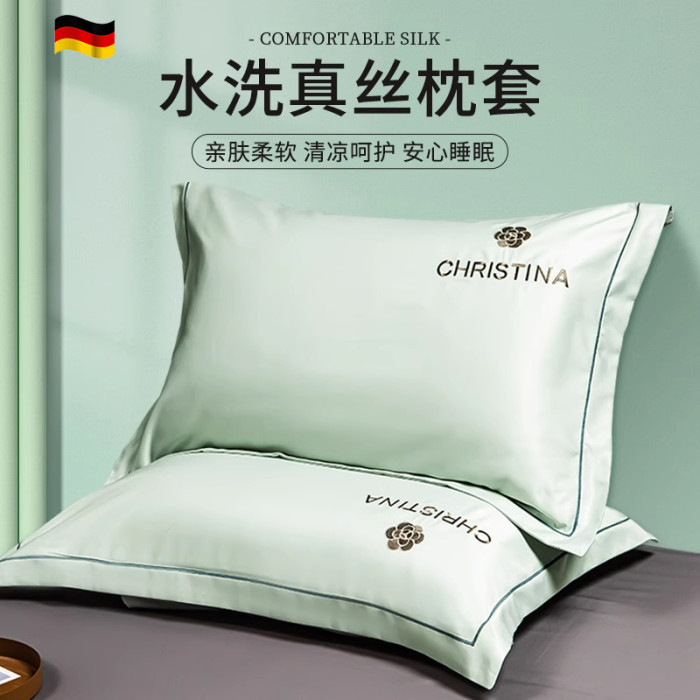 德國水洗真絲冰絲枕套2025年新款夏季單雙人冰絲48x74刺綉枕芯套