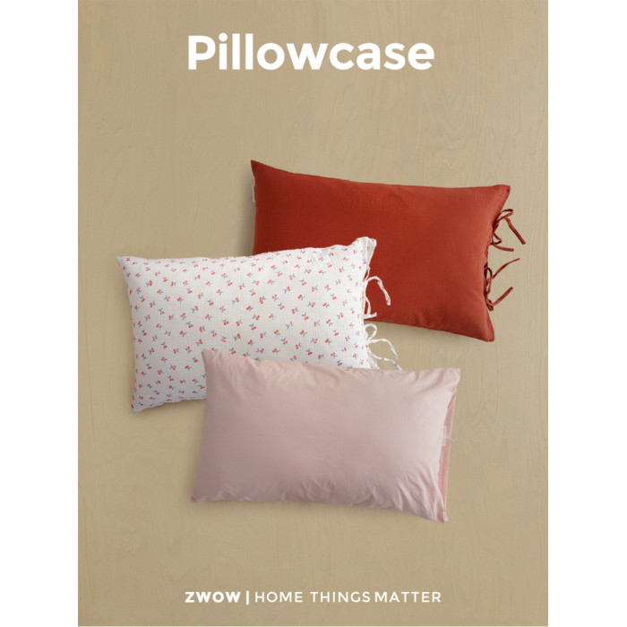 造臥zwow全棉皺皺紗純色印花提花藍色粉色米色白色單衹單品枕套