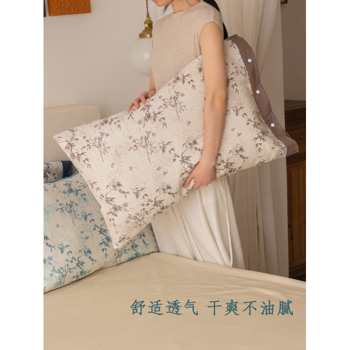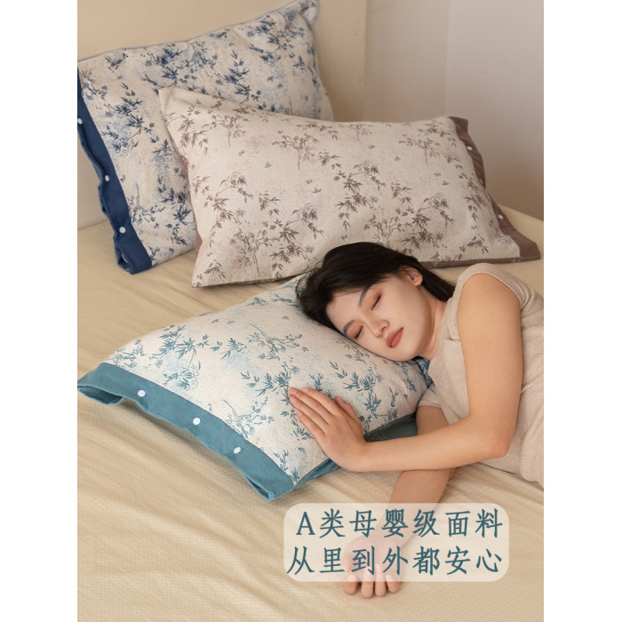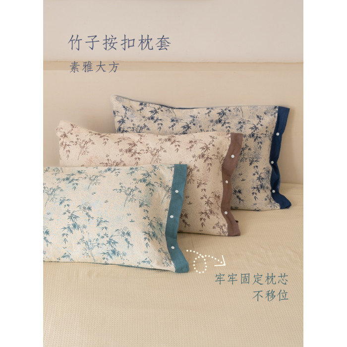 竹韻按釦紗布枕套2025新款純棉加厚枕頭套一對裝48cmx74cm防頭油