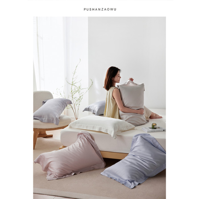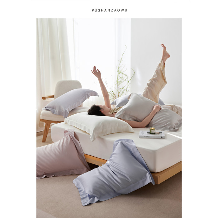 A類100S蘭精天絲枕套一對裝家用絲滑簡約純色涼感冰絲枕頭套48x74