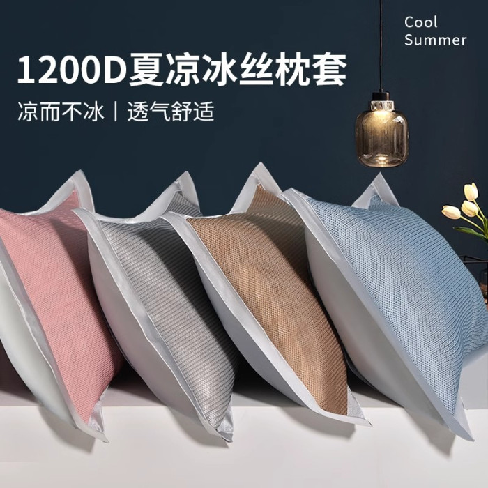 日本MUJIE涼枕頭套1200D夏季冰絲枕套一對裝家用單個冰絲枕套枕巾