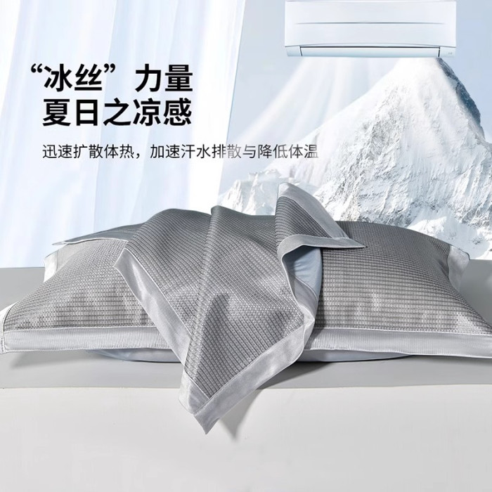 肌理紋湖藍-冰絲枕套【一衹裝】