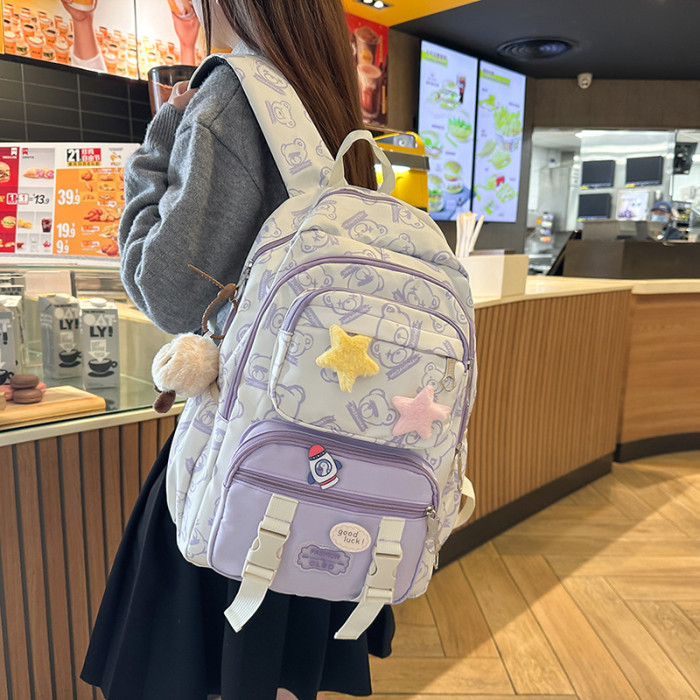 韓版ins高顔值雙肩包清新甜美可愛小熊學生書包卡通青春校園後背包