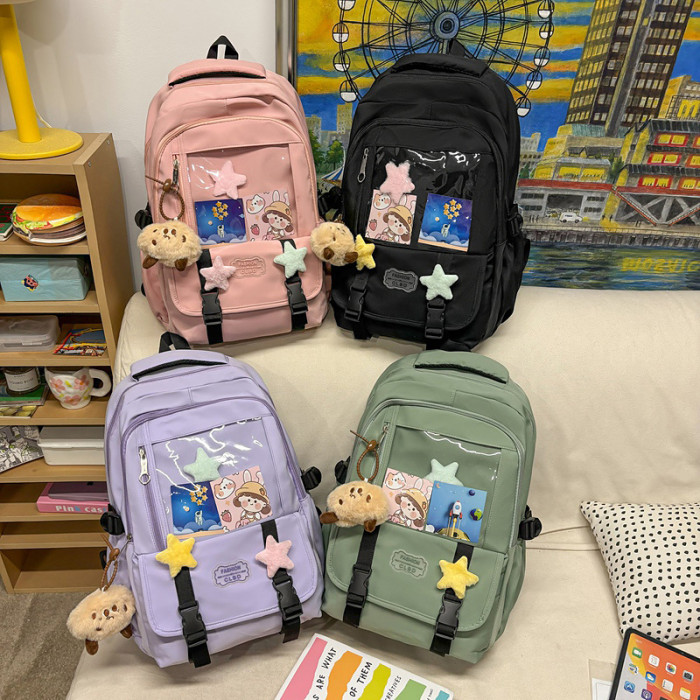 新款時尚學生痛包大容量初高中校園書包加厚耐用休閒旅行雙肩包女