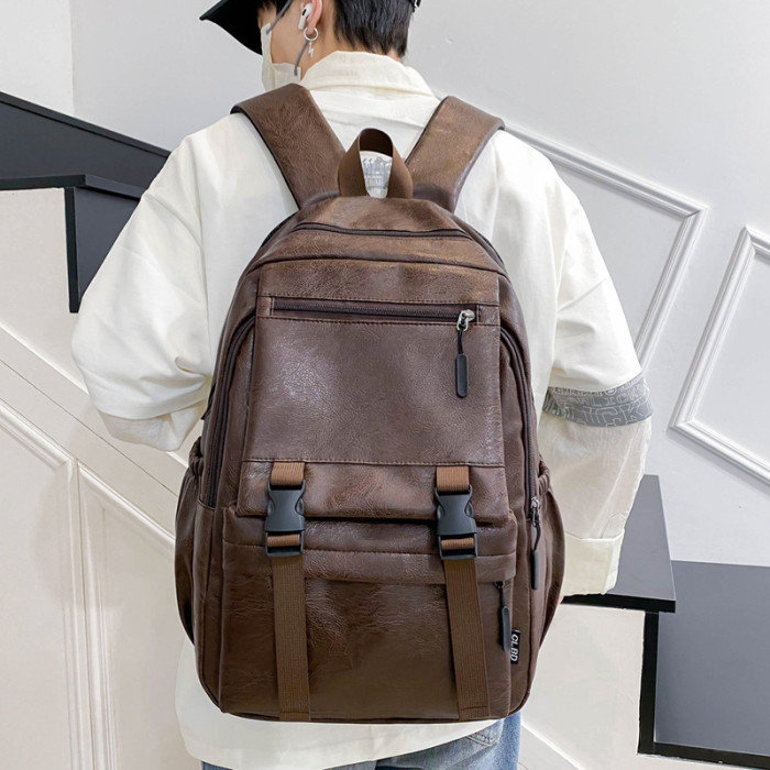 復古休閒雙肩包大容量新款男士旅行後背包軟皮商務電腦學生書包