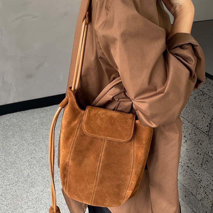 高級感磨砂牛皮hobo單肩腋下包歐貨時尚軟皮慵懶風斜背馬鞍包女潮