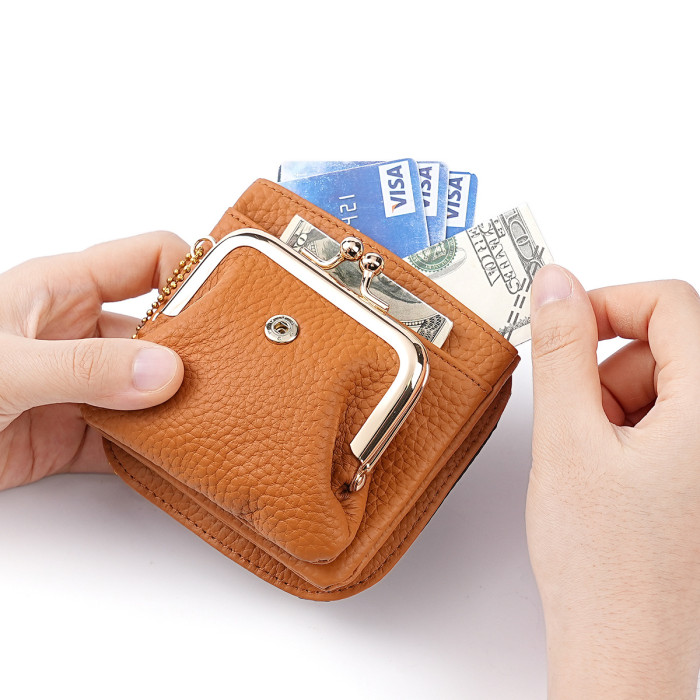新款時尚零錢包日式潮流小錢包夾子口金收納包歐美手拿包真皮