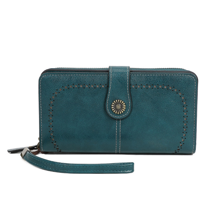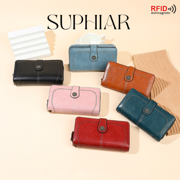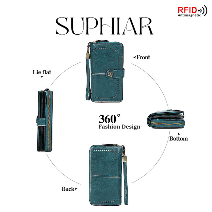RFID防盜刷女士錢包長款拉鍊錢夾pu歐美大容量手拿錢包