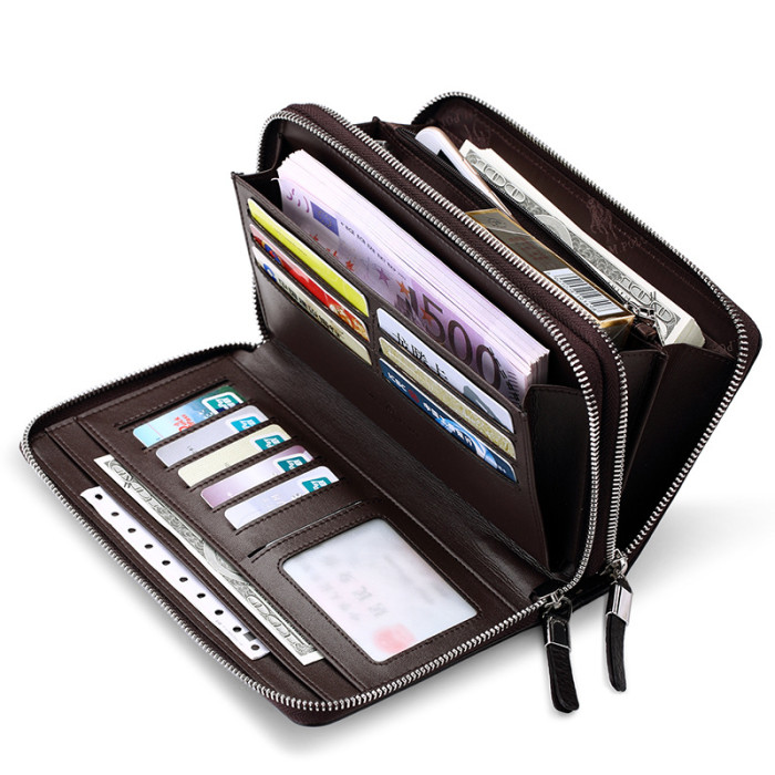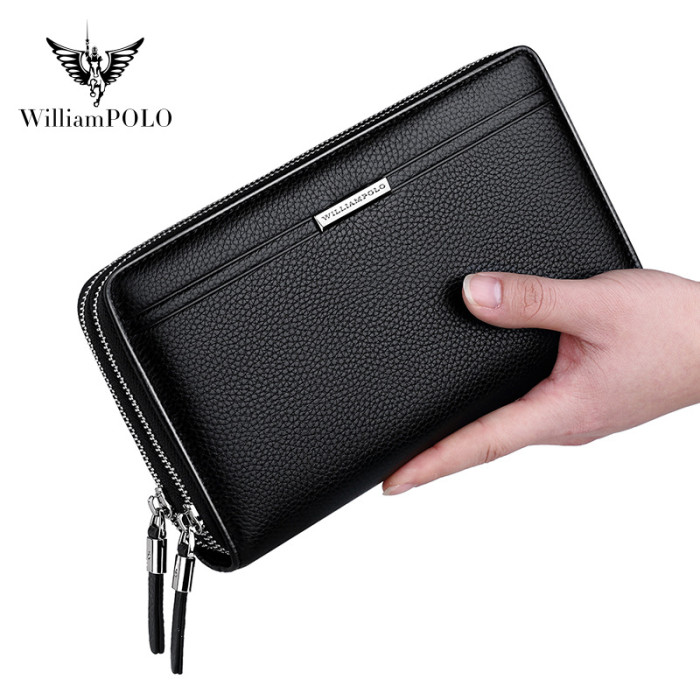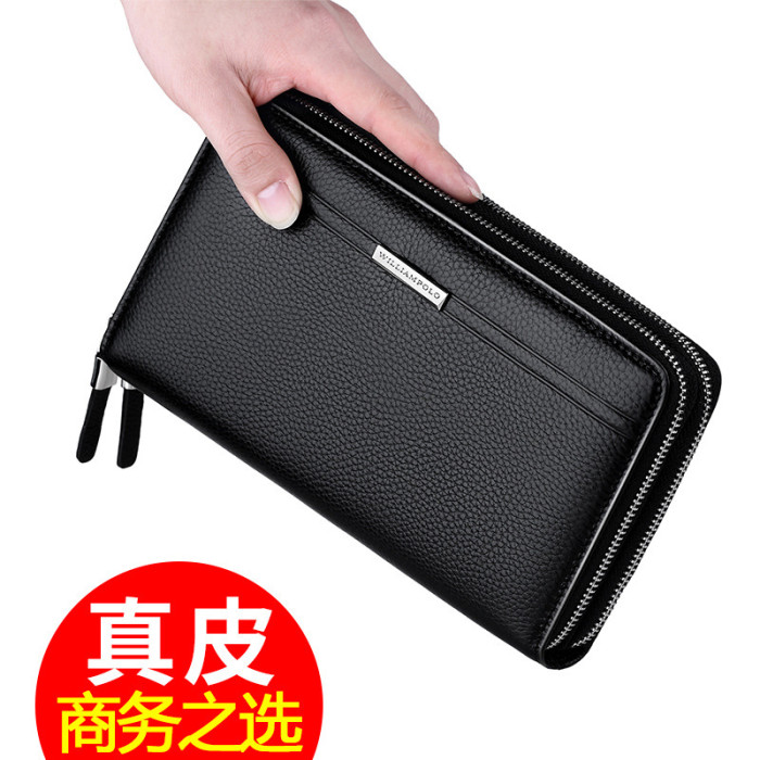 英皇保羅男士手拿包真皮長款錢包男大容量手包頭層牛皮手抓包
