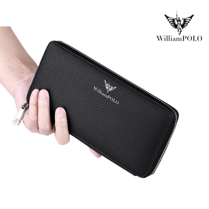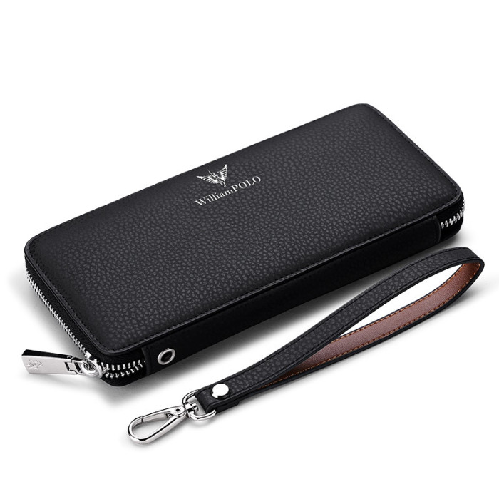 英皇保羅錢包男士多功能拉鍊長款錢包時尚手機包商務牛皮手拿包男