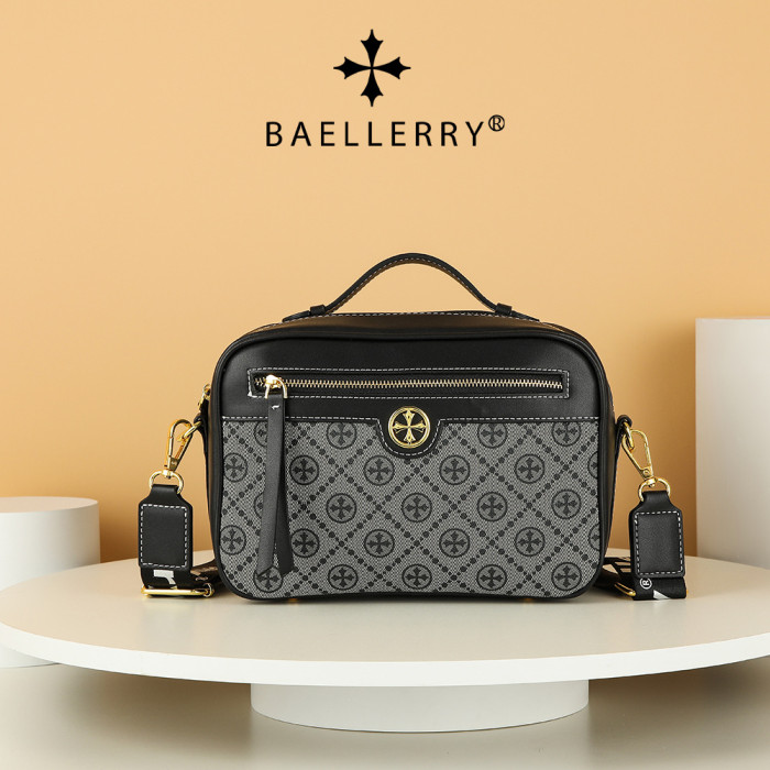 女士小方包新款Baellerry時尚拼皮拉鍊單肩斜後背包手提包女包