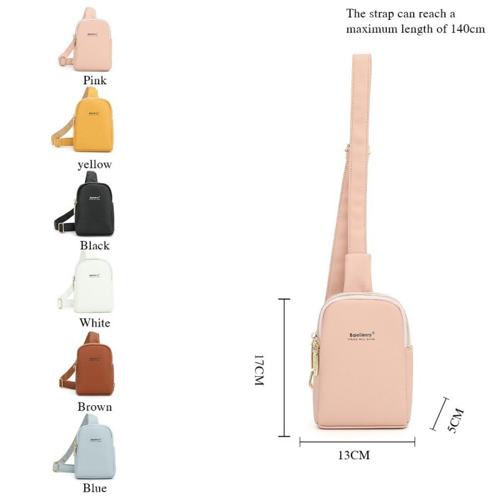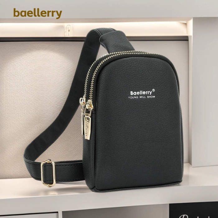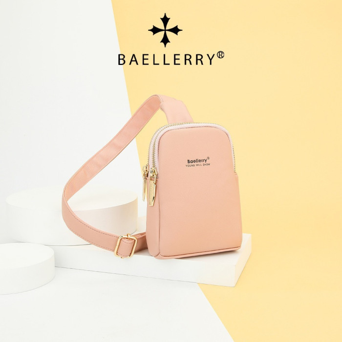 新款 Baellerry 韓版女士時尚高級雙拉鍊斜背簡約百搭手機包