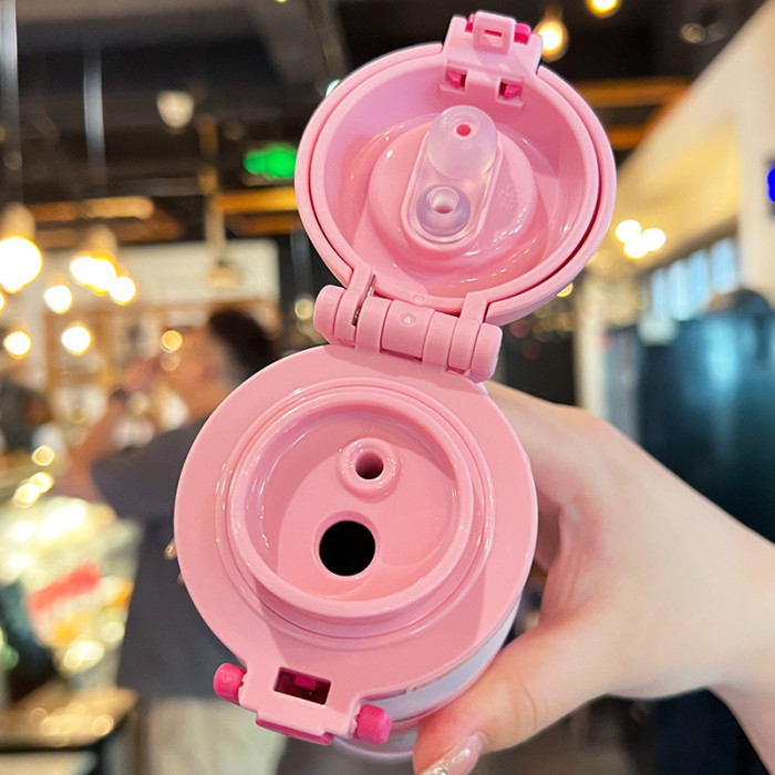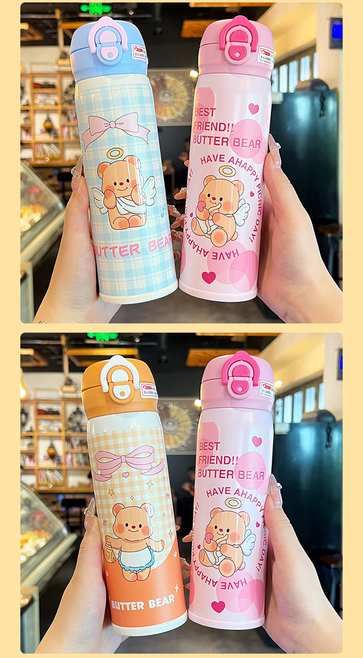 學生小熊保溫杯高顔值女生316L不鏽鋼吸管杯大容量可愛直身保溫杯