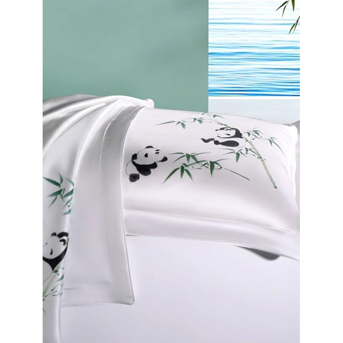 熊貓滾滾 真絲枕套 單個