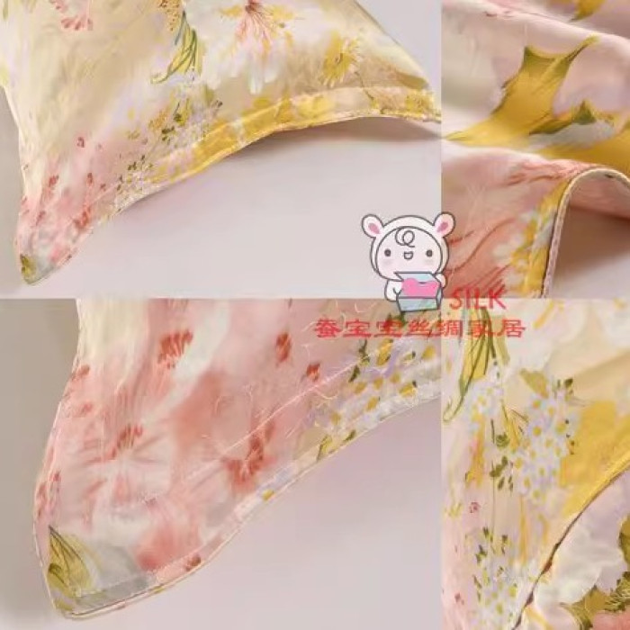 蝴蝶水草長枕套一衹 雙面蠶絲