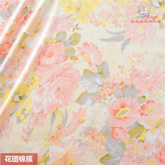 藕粉牡丹長枕套一衹 雙面蠶絲