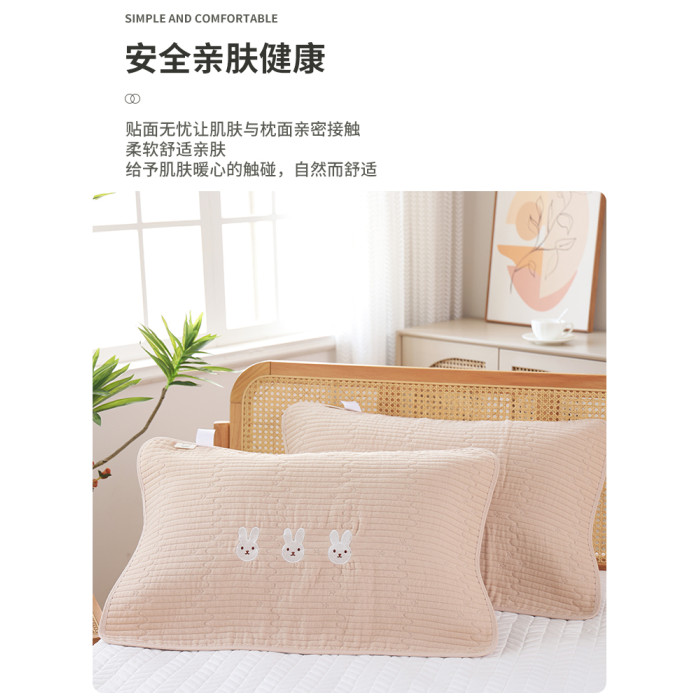 小兔子駝色枕巾一對