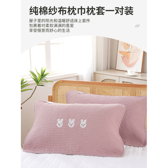 純棉紗布枕巾枕套一對裝四季通用成人家用枕頭巾全棉透氣吸汗蓋巾