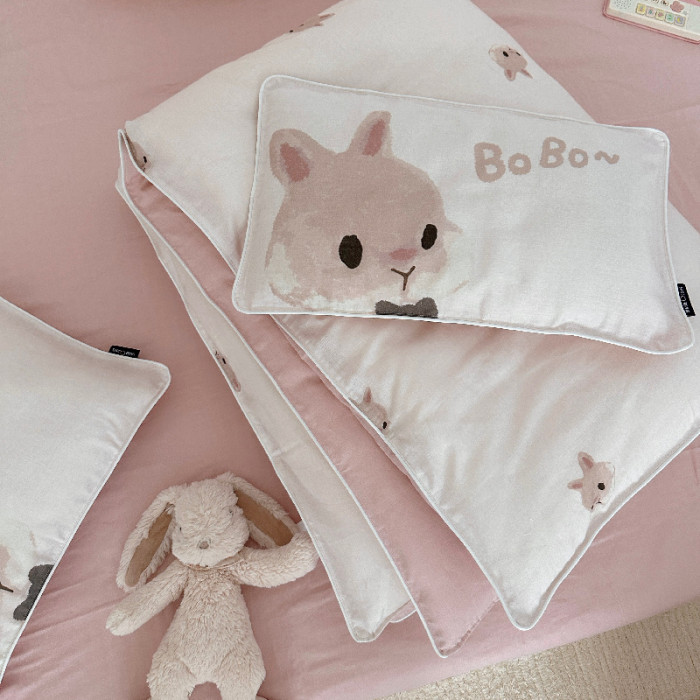 雙層紗布,觸感柔軟細膩,越洗越軟,具有良好的吸溼透氣性