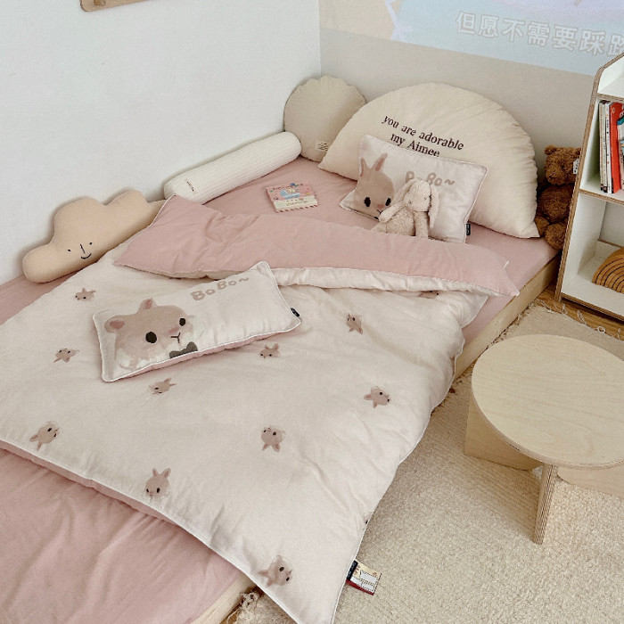 超柔a類兒童可愛單人純棉被罩嬰兒寶寶幼兒園紗布被套床品三件套