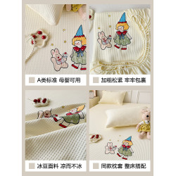 2025夏季新款家用冰絲涼蓆床笠款單件兒童卡通全包冰豆豆軟蓆子