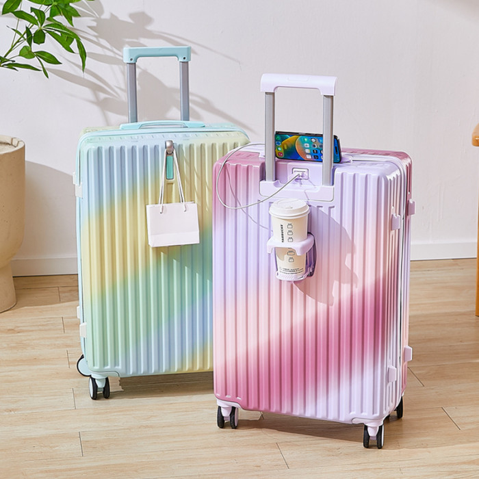 2025新款漸變潮色行李箱女高顔值拉桿箱男大容量學生密碼箱旅24寸