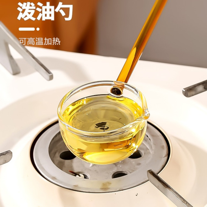 高硼矽玻璃勺耐高溫長柄高顔值咖啡勺湯勺廚房潑油調料味勺子