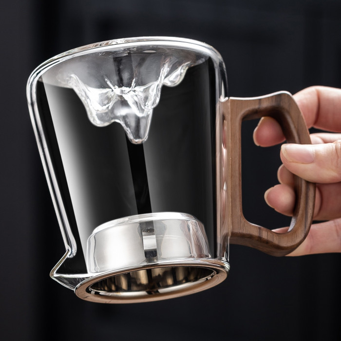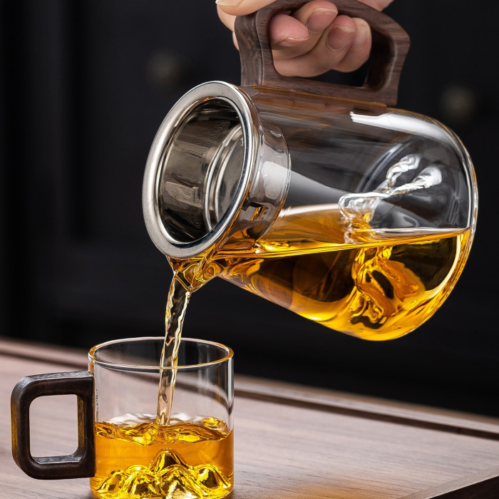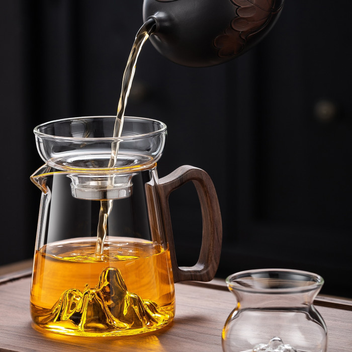 加厚玻璃公道杯胡桃木帶把耐熱家用分茶器倒茶杯過濾功夫茶具