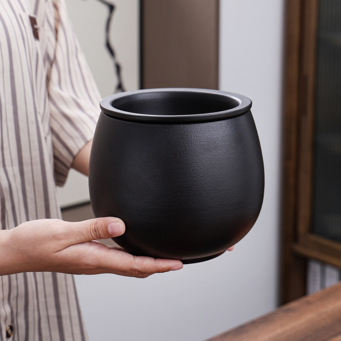 中號黑色【1200ml】路寶釉茶渣缸【無過濾】
