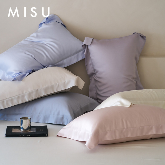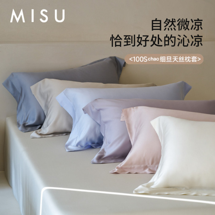 米蘇高奢100s蘭精天絲枕套一對裝夏季涼感冰絲枕頭套純色枕巾簡約