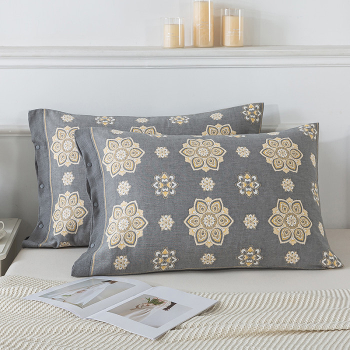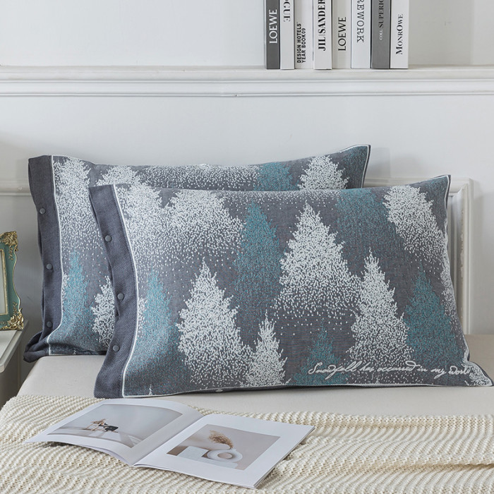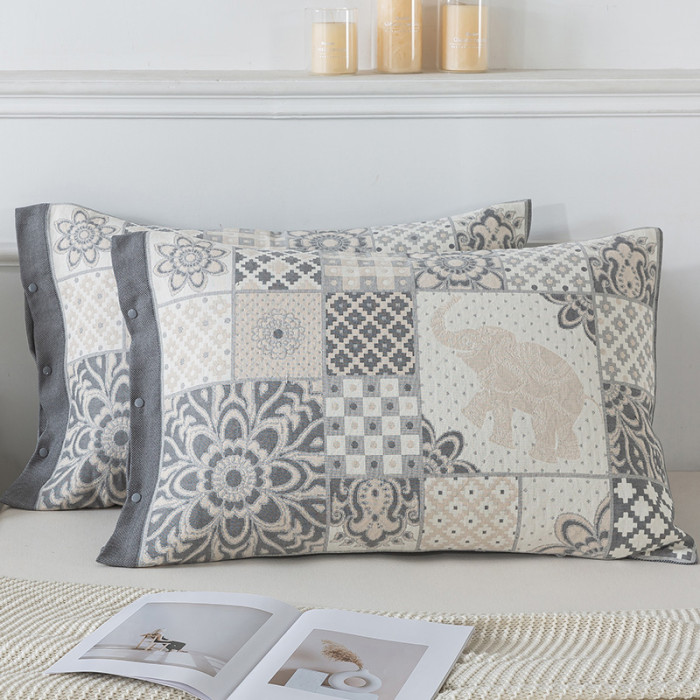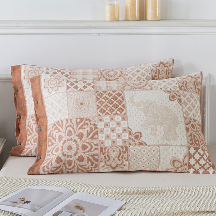 2025新款純棉枕頭套一對全棉紗布吸汗48*74家用按釦式防頭油枕套