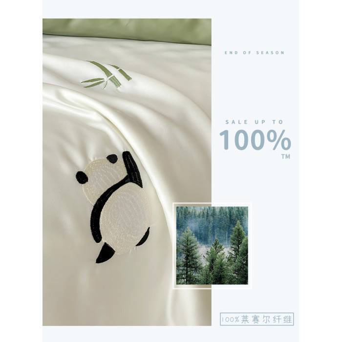 極有家卡通天絲枕頭套夏季萊賽爾纖維枕套48cmx74cm家用熊貓整套